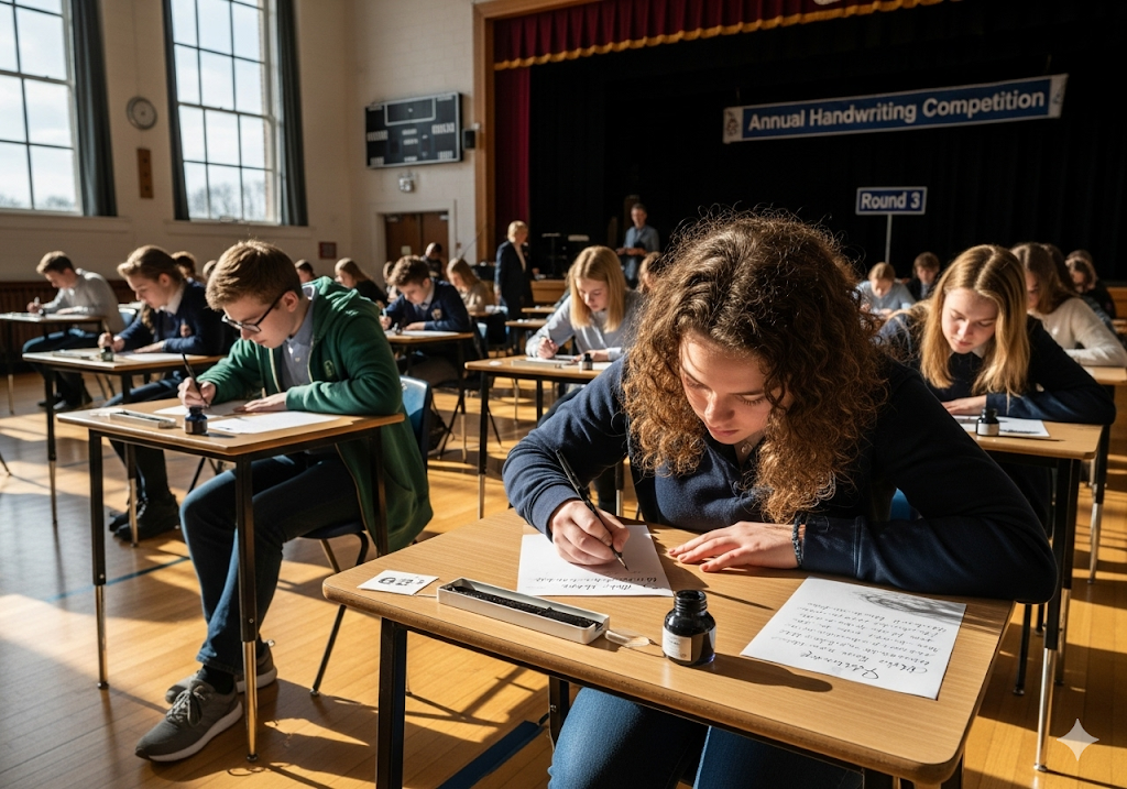 กิจกรรมคัดลายมือเป็นการประกวดทักษะการเขียนที่เน้นความสวยงาม ประณีต และความถูกต้องตามรูปแบบที่กำหนดไว้ การแข่งขันอาจแบ่งออกตามประเภทตัวอักษร เช่น ตัวบรรจง หรือ ตัวหวัด และอาจมีกติกาเพิ่มเติมเกี่ยวกับเวลา หรืออุปกรณ์ที่ใช้
